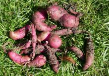 Dieses Jahr ist mir beim Gärtner eine Töpfchen mit einer Süßkartoffel-Pflanze über den Weg gelaufen und ich konnte nicht widerstehen.