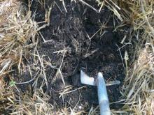 Für ca. 12 Laufmeter Kartoffeln brauche ich 1 und 1/4 Schubkarren mit gut gelagertem Kompost.