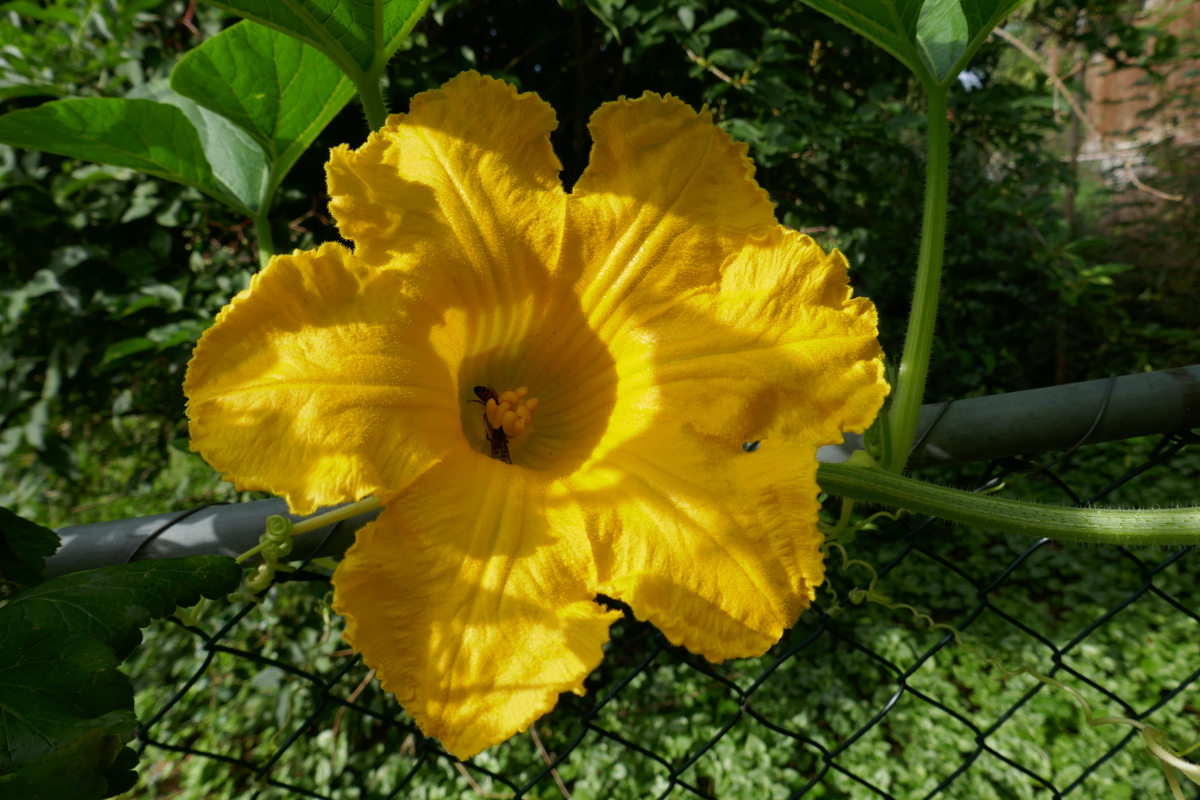 - Häßliche Gartenlelemente, wie z.B. alte rostige Gartenzäune, die man nicht entfernen kann, werden mit Kletterpflanzen kaschiert. Diese Aufgabe erfüllt hier sehr vorteilhaft der Kürbis.
