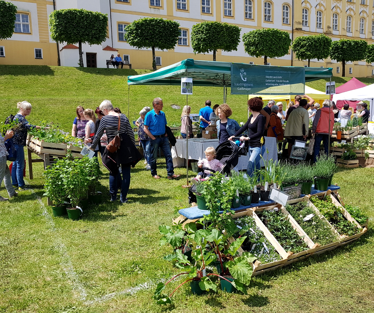 Die Stände sind wunderbar eingebettet in den großzügigen Konventgarten des Klosters Ochsenhausen.