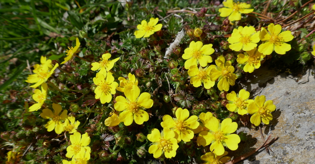 Es gibt viele Arten von Fingerkraut. Manche davon finden bevorzugt in größeren Anlagen als Bodendecker Verwendung.