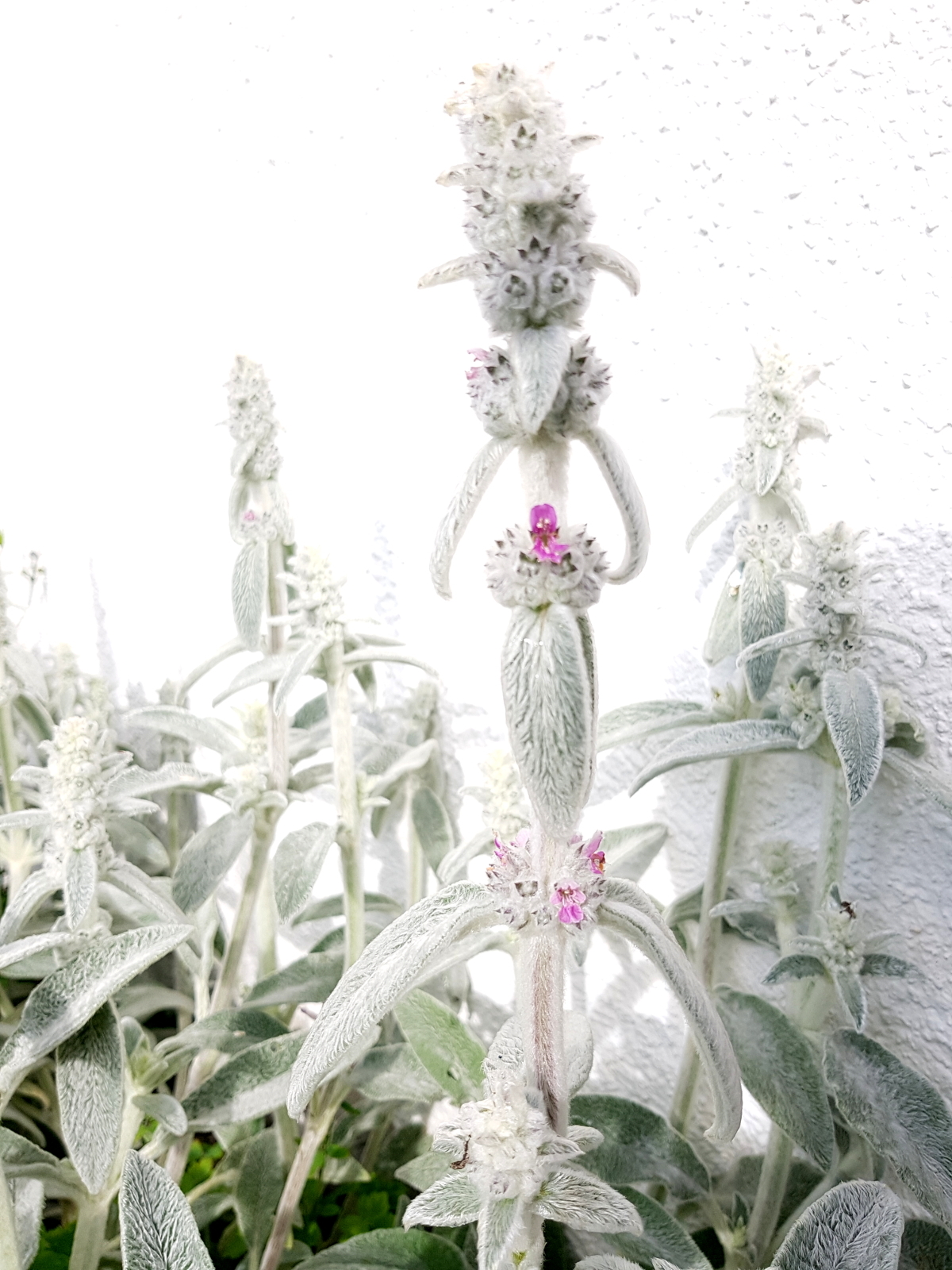 An ganz schwierigen Stellen kann man auch punktuell den Wollziest pflanzen. Sein silbriges Blatt und die zarten rosa Blütchen machen ihn zum Blickfang. Aber bitte aufpassen, er unterlässt das Wuchern auch an schwierigen Stellen nicht, wo sonst fast nichts mehr wächst. Das kann man sich natürlich zu Nutze machen.