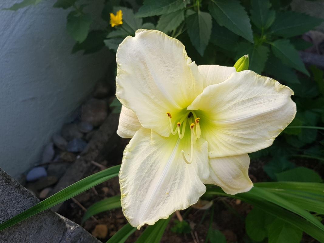 Taglilie 'White Temptation', Hemerocallis x cultorum 'White Temptation', Containerware