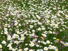 So eine Blumenwiese hätten wir auch gerne im Garten, aber obwohl wir schon seit 19 Jahren das Mähgut abrechen und zum Mulchen verwenden und nie düngen, überwiegen die Liebhaber einer Fettwiese (Löwenzahn ect) und es hat nur wenig Blumen und keine Mageriten.