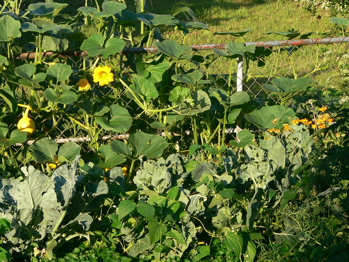 - Häßliche Gartenlelemente, wie z.B. alte rostige Gartenzäune, die man nicht entfernen kann, werden mit Kletterpflanzen kaschiert. Diese Aufgabe erfüllt hier sehr vorteilhaft der Kürbis.
