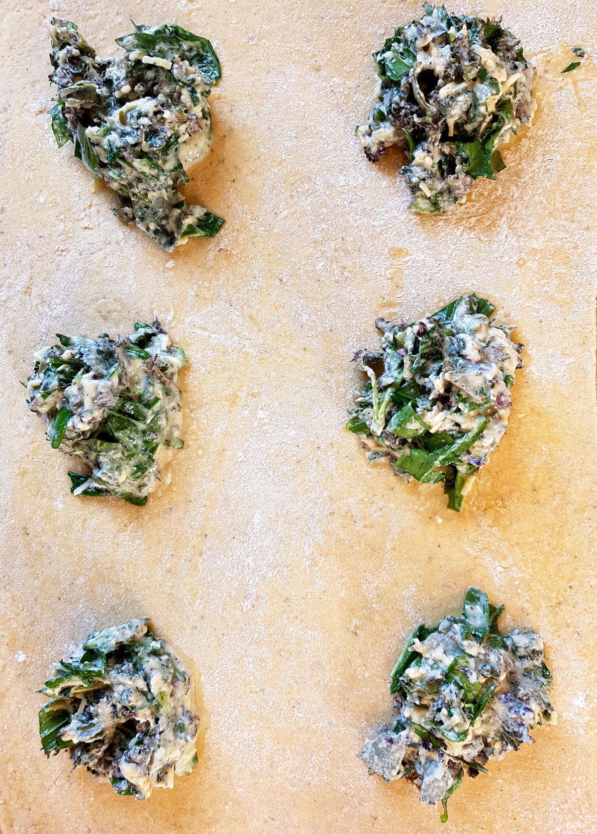 Die obige Menge ergibt 8 große Teigtaschen, d.h. für mich reicht das morgen auch noch.