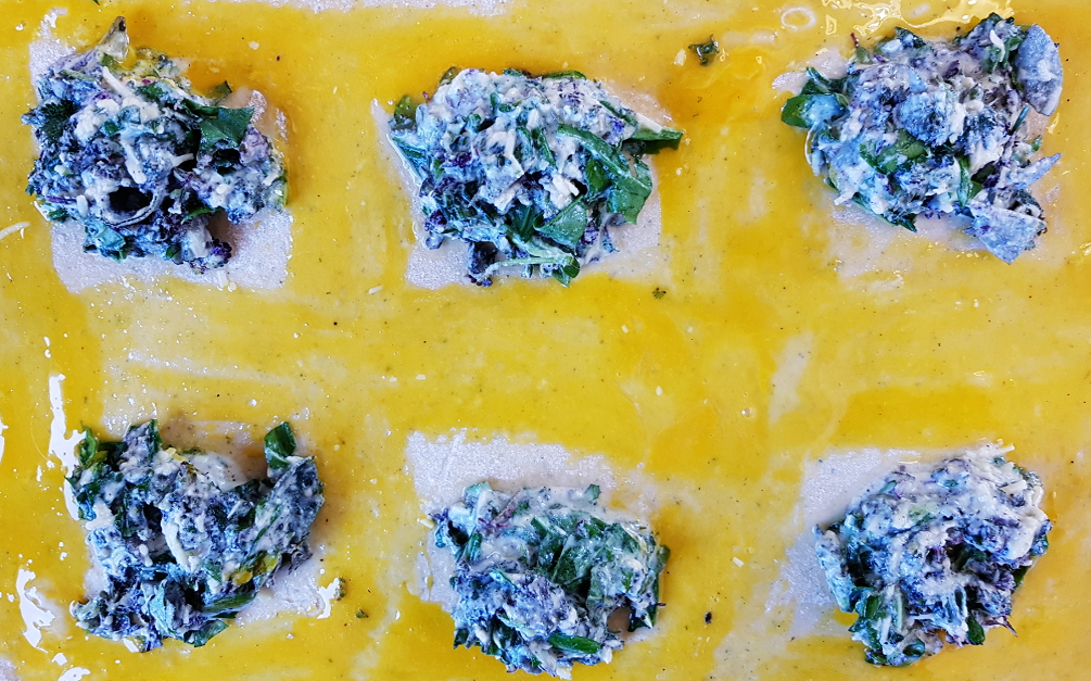 Die Ränder habe ich noch umgeschlagen und fest gedrückt, so dass das Endergebnis keine wirkliche Ähnlichkeit mit Ravioli mehr hat.